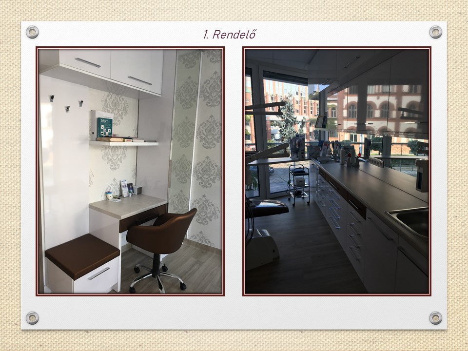 Bár korábban is több orvosi és fogorvosi rendelőn dolgoztam, ez volt az első munkám, ahol három fogorvos közös, három székes csoportpraxis rendelőjét rendeztem be. Érdekes kihívás és egyúttal szakmai élmény volt három megrendelő egyéni igényeinek megfelelni.